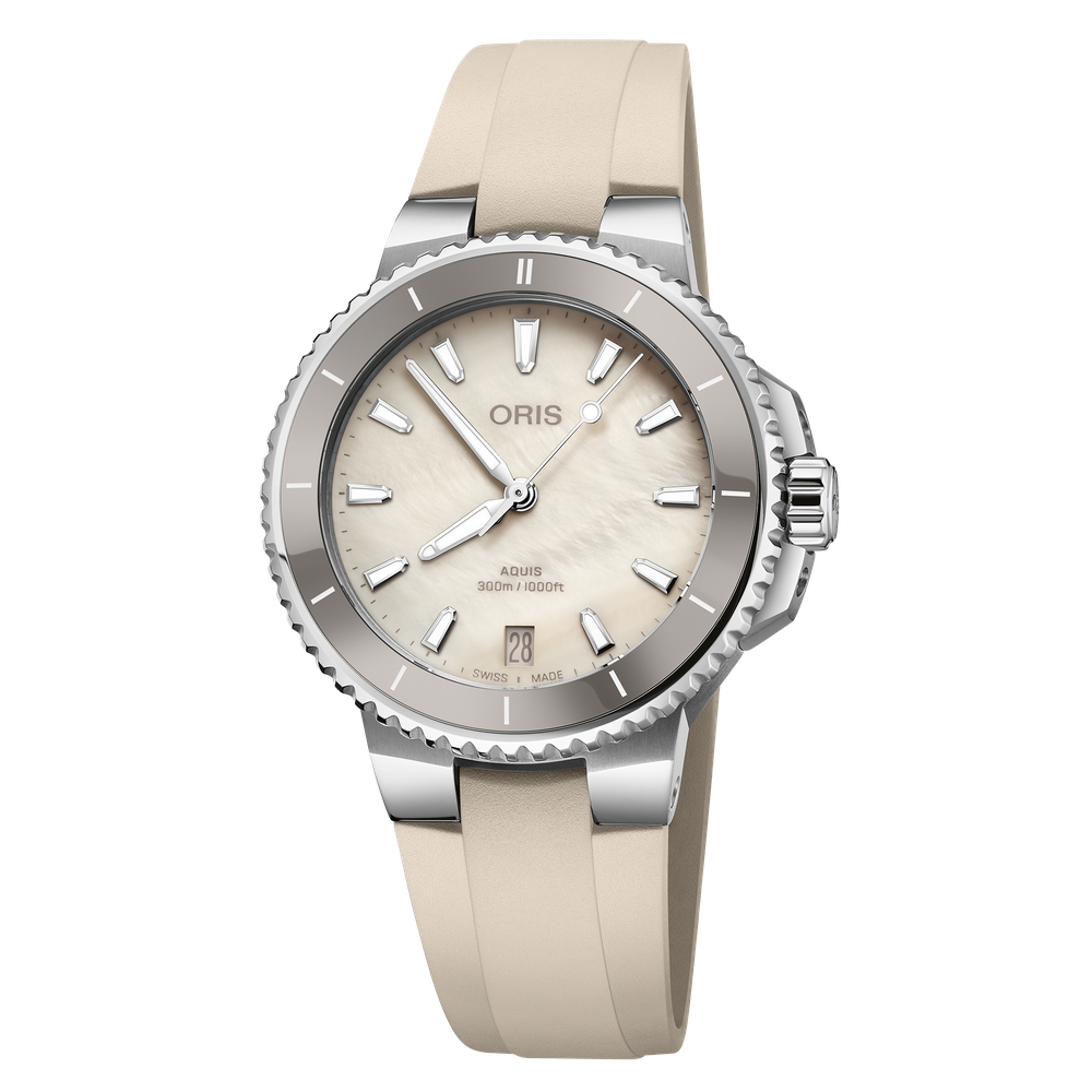 Aquis Date 36.5mm White Dial - White Caoutchouc Strap