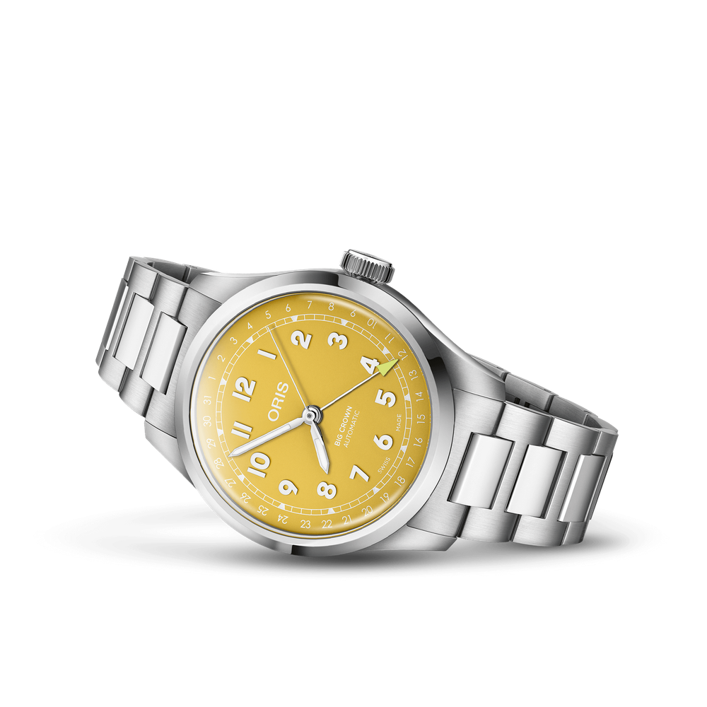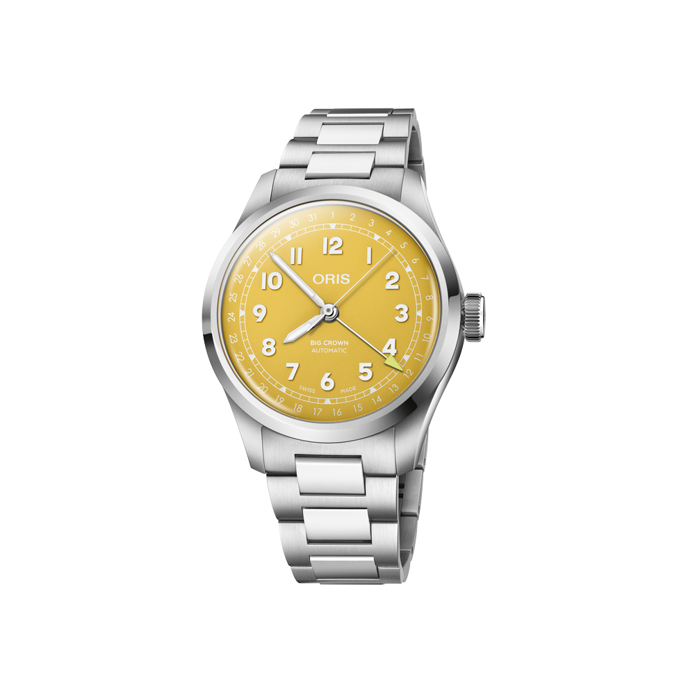 Big Crown Pointer Date 40mm Yellow Dial Steel Bracelet